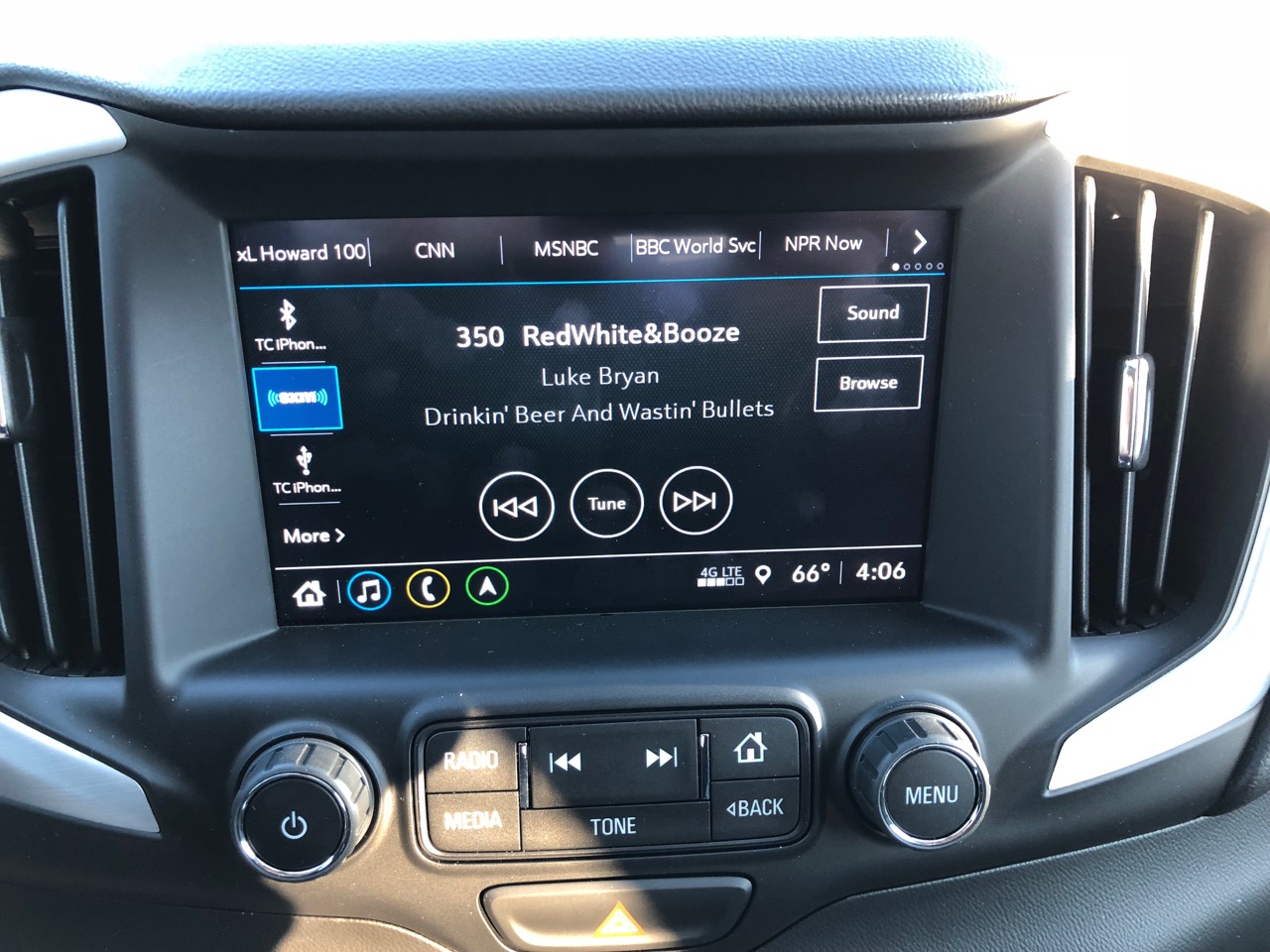With two drivers, opinions differed on some of the features of our posh ride. For instance she thought the seats too firm; we thought them perfect, particularly for longer drives. The most interesting—and controversial—feature of the new Terrain is its ”Electronic Precision Shifter” with push buttons at the bottom of the console. Let’s say opinions were divided, with her an instant accepter, while we still wanted more choice of control. She loved the ergonomic placement of the three buttons, Drive, Park, and Neutral. Some drivers like to select a gear, which remains possible (but onerous), to use engine braking for finer control over vehicle dynamics. Yes, we’re that 1%.