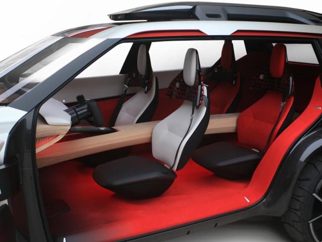 My award for most surprising use of interior materials goes to Nissan and its meaty-looking concept crossover Xmotion. We’ll see many of the exterior design details in future Nissan crossovers, but for now they’re mostly for show. The dash and center console extending to the rear seatback is honed from one big piece of cedar with methods historically used by Japanese craftsmen. Huge wheels that appear molded into the sidewall of the fat, creatively siped, Michelin tires, add an aesthetic flair.
