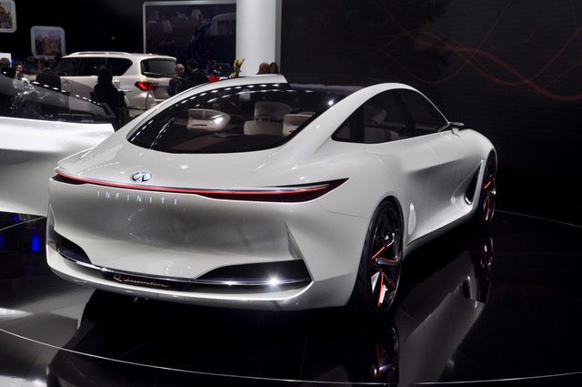 Also on the Infiniti stand was the stunning Q-Inspiration Concept, a large sedan (if we can apply such a pedestrian term to such a way-out car) winning two EyesOn Design awards, one for Best Concept Vehicle and one for Best Designed Interior. Concept cars usually show where production designs will go in the not-to-distant future, and in this case perhaps where powertrains will go as well. The Q-Inspiration features a VC-turbo engine with variable compression and a single-scroll turbo. Compression can adjust itself from 8:1 to 14:1 to balance needs for power or economy.