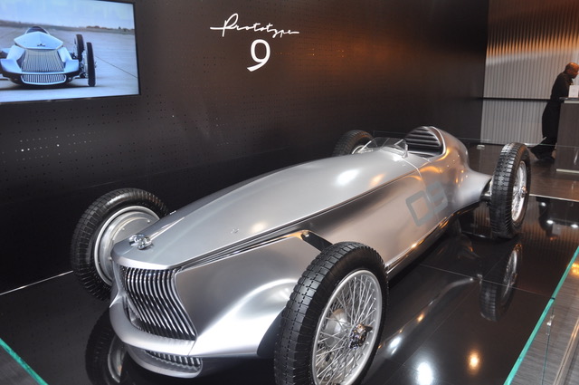 Infiniti won the prestigious EyesOn Design Best Concept Car Award for the Q-Inspiration, but in the back corner of their booth we found a different treasure: the most amazing design exercise we’ve seen in a long time. Created for the Pebble Beach Concours d’Elegance last summer, the “Prototype 9” represents what Infiniti’s designers think they would have built had they been a leading automaker in the 1930s. The striking electric race car pays homage to the German Silver Arrow cars, but adds distinctively modern, aesthetic elements. We might call it a faux-heritage design. Infiniti PR guy, Kyle Bazemore, tells us about the project and the car. It was there only to impress the press and will not be there for public days. Sorry, y’all.