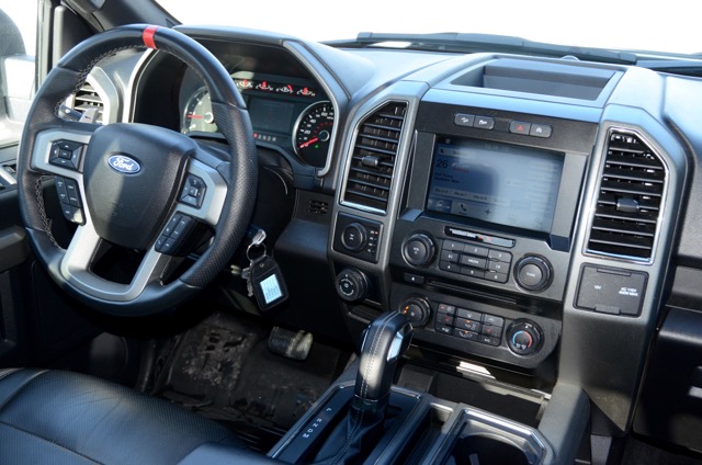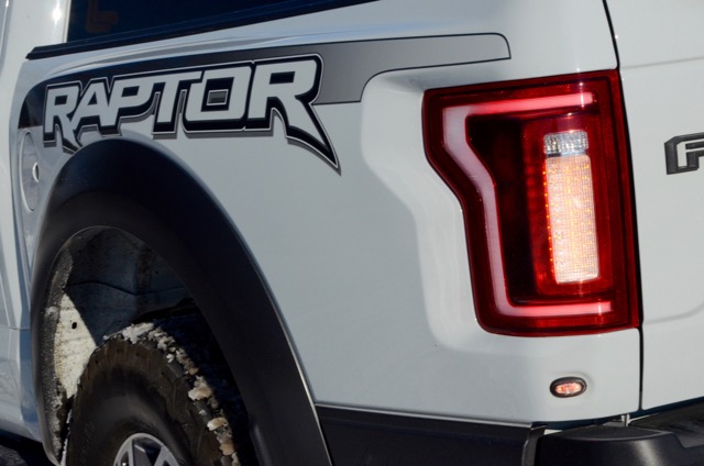 Options on my test-Raptor included 10-way power and heated front seats, leather-seat surfaces, SYNC 3 and an 8-inch LCD Touchscreen in the center stack ($3,158), pro-trailer backup assist ($395), voice-activated navigation ($795), exterior graphics package ($1,075), hood graphics package ($900), SYNC connect ($235), 4.10 front axle with Torsen differential ($500), tailgate step ($375) and a spray-in bedliner ($495). Destination charge is $1,195 for a total of $57,448.