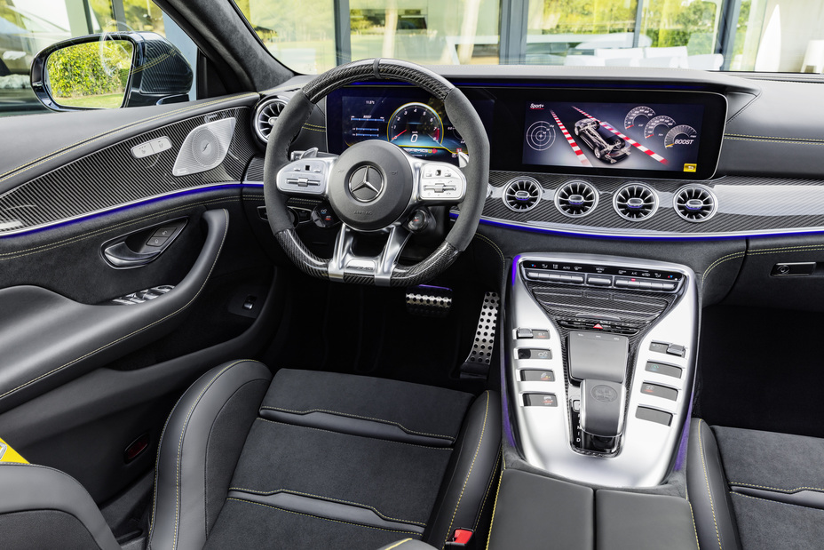 For high comfort in everyday use, the new four-door sports car from Affalterbach boasts all the connectivity and Intelligent Drive functions and options of the Mercedes-AMG S-Class. This includes the ability to support the driver with routine daily tasks such as driving in a traffic jam.