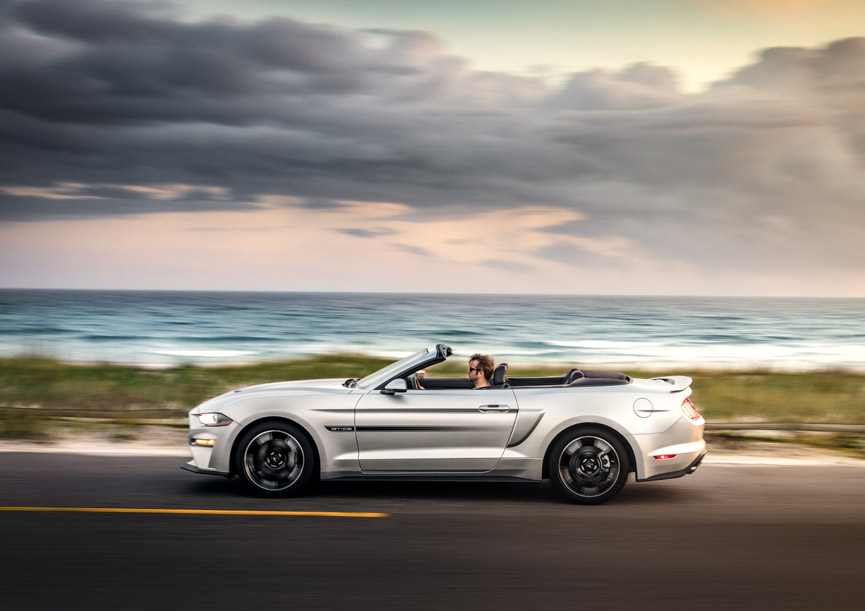 “Few things are more satisfying than dropping the top on a California Special and taking a drive down the majestic Pacific Coast Highway,” said Mark Conforzi, Ford designer. “This signature design takes its cues from the original California Special, while enhancing the personality of today’s Mustang.”