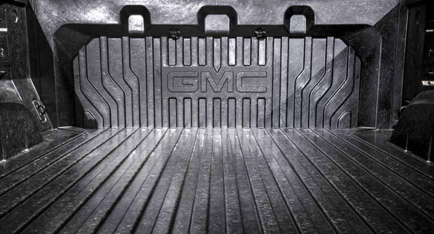 Inside, hand-stitched pebble grained leather seating may be accompanied by native open-grained woods. We've seen open grained woods on European luxury cars, never on pickups. With infotainment both a necessity and a potential distraction, GMC offers its interpretation that is touch-screen, and uses a familiar smartphone appearance for rapid familiarization.