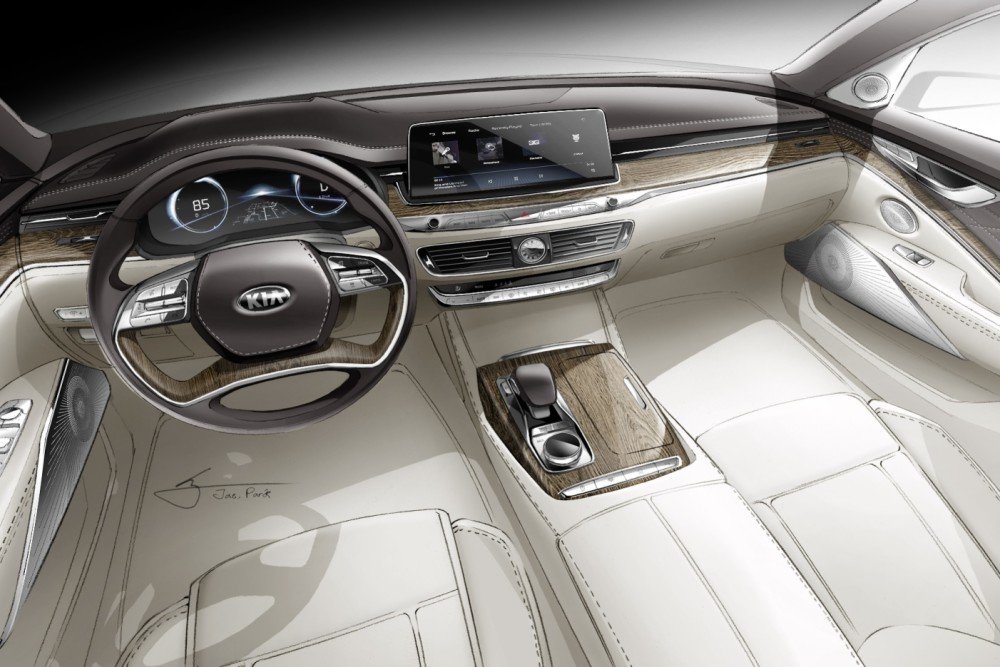 IRVINE, CA - March 15, 2018: Kia Motors has previewed the interior design of the all-new K900 flagship luxury sedan in a sketch released today.