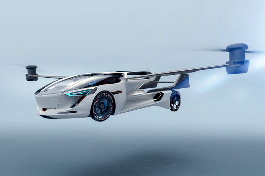 • First glance at the electric 4-seater AeroMobil 5.0 VTOL, the flying taxi combining autonomous flight with driving capability.
