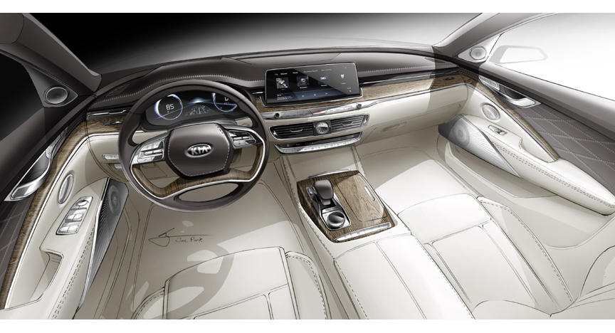 to the large sedan segment. Kia’s designers were inspired by a design ethic they call ‘The Gravity of Prestige,’ and this all-encompassing philosophy translates to a feeling of solidity and volume in the upscale space.