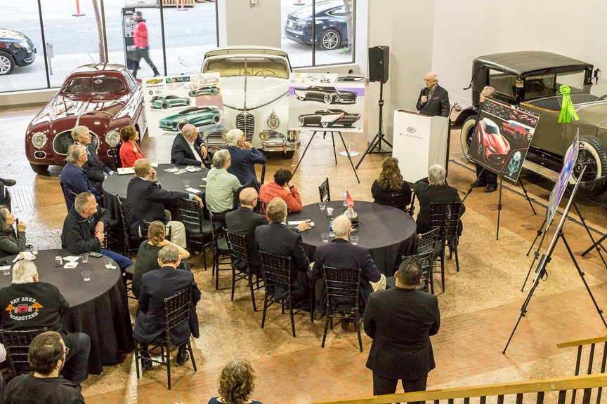 Several overheard conversation seemed to be leaning towards one design as there was agreement that one could easily see that short wheel-base Nomad gliding down the road and would recognize that it was a decedent of the original Chevrolet Corvette based Nomad. It just looked right. Dick made similar comments and awarded Kevin Chen the $10,000.00 scholarship while offering high praise for the work of the other students who would each go home with $1,000.00 Scholarship. And he encouraged the five finalists to stick with it as he did, that they all had bright futures ahead of them.