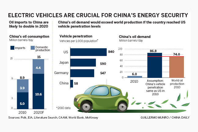 Editor's Note: Look at the chart above, it shows that there will not be enough oil in the world to supply gasoline for all of the private vehicles projected to fill roads in a "westernized" China, so without the availability of electric vehicles, powered vehicles would not be available in China...therefore, it's EV's or Bikes! No wonder China is pushing Electric...but why is the rest of the world following like lemmings off a cliff?