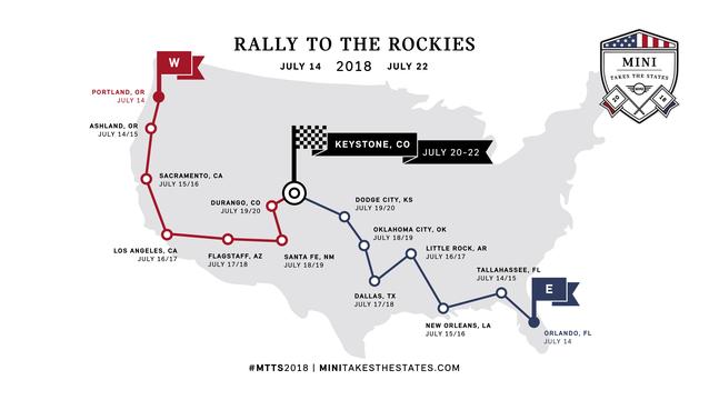 The two rally routes, each with more than 800 participants, started in Orlando, Fla., and Portland, Ore., on Saturday, July 14, and will meet in the middle at Keystone Report in Keystone, Colo., on July 20 for a weekend celebration of everything MINI. The bi-annual trek will cover more than 5,000 miles in total, traveling across America on state and county roads, stopping in 15 cities along the way.
