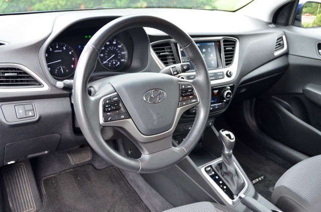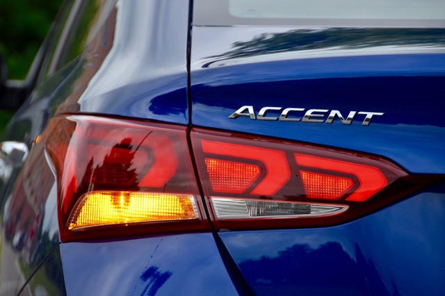 A hands-free Smart trunk senses the driver is near from at least three feet away and the trunk automatically opens. I had a laughable moment with this trunk feature as I paused behind the Accent to use my mobile phone and the trunk then decided to pop open.