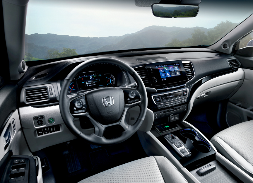 In addition to its numerous technology upgrades (described below), updates to Pilot's interior include new trim around the vents, available 3-way heated front seats, and wider fold-down armrests for the driver and front passenger. Additionally, second-row captain's chairs are now available on both Touring and Elite models (previously Elite only) and second-row retractable sunshades are available on EX-L, Touring and Elite grades.