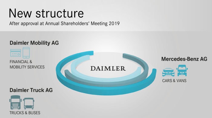 - ·Future structure of three legally independent entities - Mercedes-Benz AG, Daimler Truck AG and Daimler Mobility AG - under the umbrella of Daimler AG