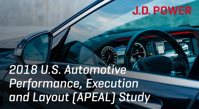- All categories improve in 2018: The APEAL Study examines 10 vehicle categories, all of which consumers are finding more satisfying vs. 2017: driving dynamics (+12 points); visibility and safety (+11); engine/transmission (+10); audio/communication/entertainment/navigation (+10); seats (+10); heating, ventilation and air conditioning (+10); exterior (+9); interior (+9); storage and space (+9); and fuel economy (+4).