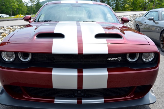 I drove both the new Hellcat Redeye and the R/T Scat Pack…this one with a 6-speed manual, for a couple hours each from coastal Maine to the 2.5 mile Club Motorsports circuit in Tamworth, New Hampshire. Club Motorsport sits in the White Mountains, carved in the side of a hill and provides 250 feet of elevation change around its 15-turn circuit.
