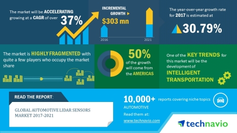 This research report titled ‘Global Automotive LIDAR Sensors Market 2017-2021’ provides an in-depth analysis of the market in terms of revenue and emerging market trends. It also includes an up-to-date analysis and forecasts for various market segments and all geographical regions.
