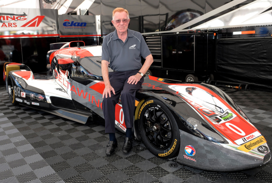 ![]() Don Panoz and his DeltaWing race car at Road America in 2014 photo courtesy of DeltaWing Project 56, LLC. |