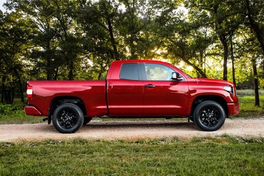 Relying on a selection of color-keyed accents and blacked-out wheels, SX combines thoughtful upgrades to create what may be the cleanest Tundra to date. The exterior of the truck is streamlined with the removal of all exterior badging. Next, color-keyed front grille surrounds, front bumper end caps and a rear bumper are added for a uniform appearance. Front bucket seats are upgraded for added comfort, and 18-inch black alloy wheels add a nice finishing touch.