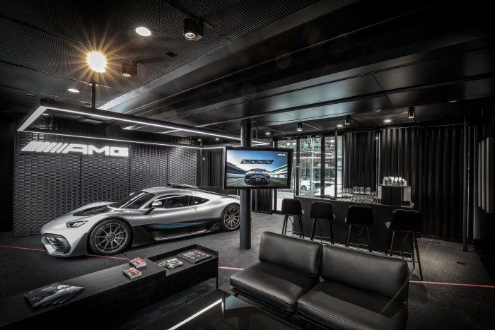 This creates a mobile customer showroom with vehicle display, coffee bar, lounge and various information elements, such as touch screen animations, material samples and colour examples. The contents are regularly updated and supplemented. The information on offer is rounded off by video documentations and interviews. The show truck is now available for the first time to Mercedes-AMG ONE customers in the grounds of the Munich Mercedes-Benz branch.