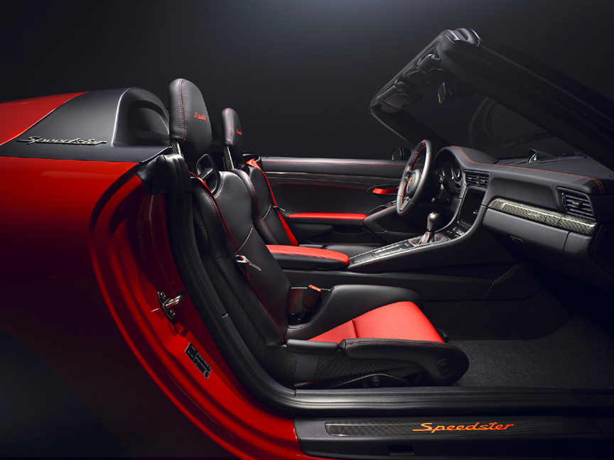 The concept cars’ body is based on the 911 Carrera 4 Cabriolet. The fenders, as well as the front and rear bonnet are made from lightweight carbon fiber composite while the chassis was taken from the 911 GT3. Furthermore, the GT development department provided the exhaust system with its titanium tailpipes and the drivetrain including the manually operated six-speed gearbox. The same goes for the centerpiece of the limited special edition: The Speedster Concept is powered by a naturally-aspirated flat-six engine developing more than 500 hp and capable of engine speeds up to 9,000 rpm.