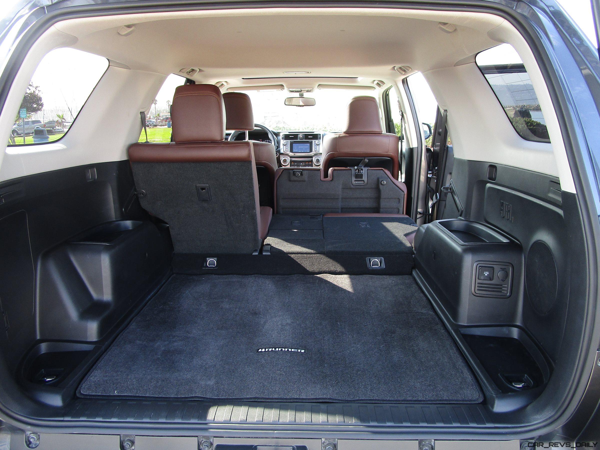 We give the 4Runner high marks for comfort and civility on the highway. Despite its truck base and the boxy charicter, we neither heard nor felt the 75-mph wind moving around us. The talented Toyota designers have used air management tricks all the way around the SUV to slice and dice the air passing by at high speeds. Ride and handling are fairly stiff and we know we’re driving a truck. You have confidence that if necessity or fun require you can conquer most off-road challenges. Seats are generous and comfortable and covered with a faux-leather you can hardly tell from the real thing.