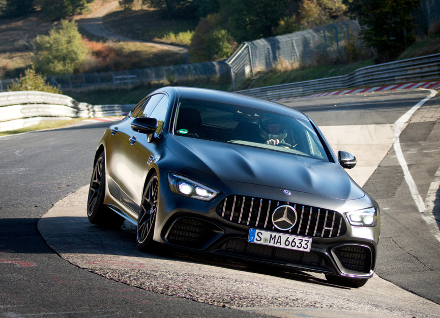 STUTTGART - November2, 2018: With an officially measured, certified and notarized time of 7:25:41, the new Mercedes-AMG GT 63 S is the world's fastest series production four-seater on the legendary North Loop of the Nürburgring.