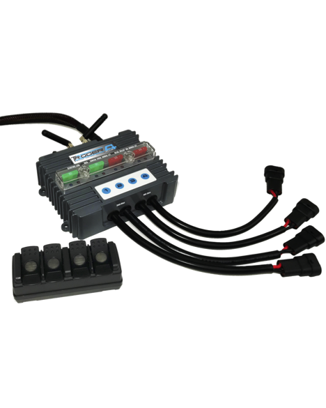 The Trigger 4 Plus delivers a high-quality, cost-effective solution for controlling aftermarket lighting, e-lockers, race radios, whips, cooling fans, even compressor systems, when installed with the optional relay kit. The product lets users quickly and easily upgrade and simplify wiring 12-to-24-volt accessories, and control them all with the full rocker RF remote and optional Bluetooth-connected Trigger ACS Plus mobile app. The package includes all necessary wiring harnesses, mounting and wiring accessories and a decal sheet for switch identification.