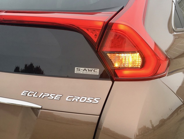 The Eclipse Cross is somewhat distinctive in its exterior design with its narrow headlamps and large lower turn signal/fog light. Side sculpture character lines lead to the rear with taillights that form a light-bar dividing the rear hatch glass.
