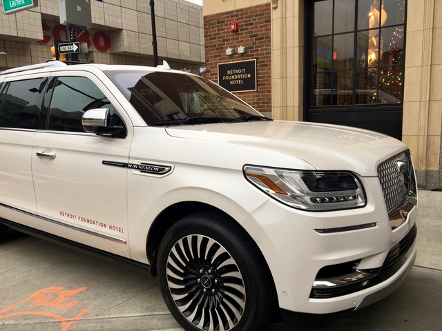 Ironically, not too long after my week of driving the Navigator I became a passenger in one. This came to pass during a weekend stay at the Detroit Foundation Hotel. Lincoln has collaborated with the hotel and provides a Navigator and a Continental for complimentary hotel guest car service within a three mile radius of this downtown Detroit hotel.