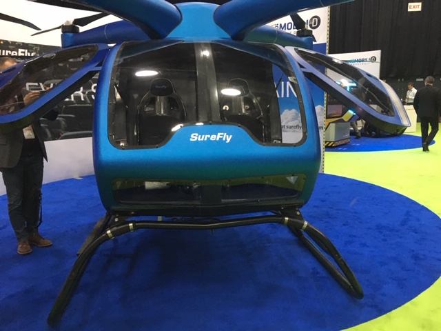Surefly has made its debuts at a Paris flight show, the LA Auto Show and the Consumer Electronics show. Never know when it might fly over your neighborhood, with a pilot encouraging you to climb onboard.
