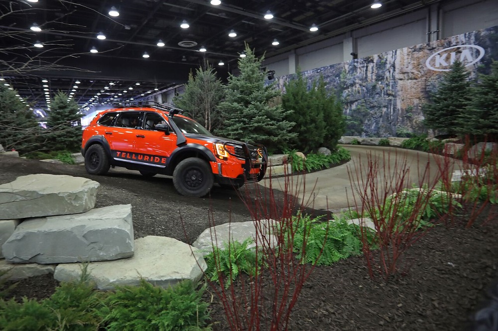 Kia really took advantage of the extra floor space on the main floor to stage an off road course on which to introduce and then demonstrate its new SUV the Telluride. Inspired by the city in the Rockies and produced in KIA’s West Point Georgia facility, this latest SUV began its life as a concept in 2016 that made its debut here in the D. This course nestled among conifers and an impressive background is in addition to its traditional stand that showcased its every expanding line up.