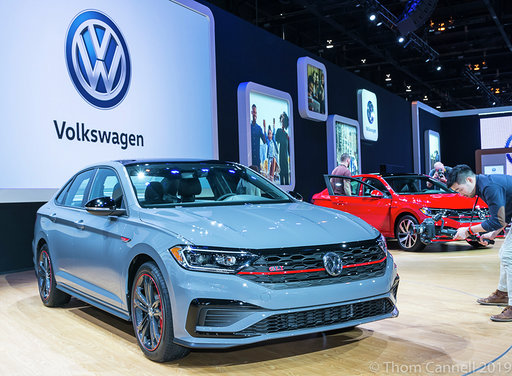 Volkswagen presented the newest version of the GLI, a performance (sort of) version of the mainstream Jetta compact sedan. Many of us, this reporter included, perk up when we learn of any car still produced with a manual transmission. You can get a six-speed manual or a 7-speed dual-clutch automatic behind the 228-hp 2.0-liter GLI, or you can have a 260-hp turbo version. Other performance attributes include a VAQ limited-slip differential, Golf R brakes and multi-link independent rear suspension. Cosmetic enhancements make it look much less like the white-bread sedan it starts out as, and they have a 35ttg Anniversary Edition with a red stripe around the wheels. Some of the interior details go downscale instead of up, but it easily retains that well-earned reputation for affordable performance with Teutonic design and handling.