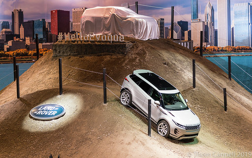 Jaguar Land Rover occupies much of the far end of the South Hall at McCormick Place this year. They built a dirt track where folks can get a challenging ride over rocks, undulations and a pretty good hill during the show. They introduced the new Range Rover Evoque, a sporty and stylish SUV that now comes with a 48-volt mild hybrid powertrain and 9-speed ZF automatic transmission. It all comes together with a standard 246-hp Ingenium engine for a total 296-hp output. While it looks much like the last version, with a few subtle-but-significant design details, the new Evoque rides on an all-new platform. It gets a tad more cargo space, a little extra length. True to its heritage, it offers upgraded off road technology and a 360° camera system that provides visibility under the front of the vehicle. You’ll see it at dealers’ as soon as this spring with a base price of $42,650.