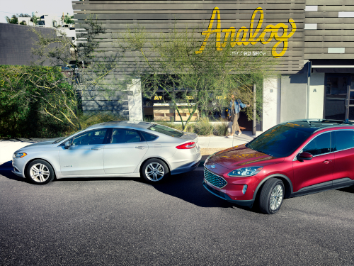 Ford cites an EPA estimated 400-mile driving range on a 14-plus gallon gasoline fuel tank, using regular, more than 550 miles with the standard, front-drive hybrid, and pure electric range of more than 30 miles.
