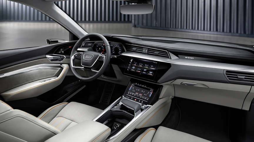 - Drivers can select the e-tron-specific virtual cockpit display, providing detailed charging, battery, route and infotainment information in the driver’s line of sight directly behind the steering wheel.