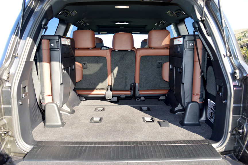 The underpinnings of the Land Cruiser are what make it bullet-proof off road. All the basic building blocks are included here: locking limited slip center differential, kinetic dynamic suspension system, multi-terrain selection dial, crawl capability, and off-road turn assist. You will have a hard time finding a locale inimical to the Land Cruiser. But in normal driving around town, this weighty piece is rather ungainly. Its curb weight (5,855lbs.), length (195in.) and height (74in.) all conspire to make it difficult to park in a world geared to "compact" vehicles.