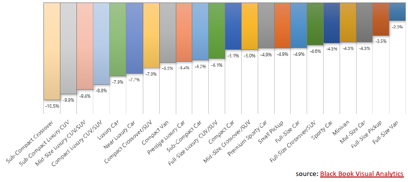 Recent trends show higher depreciation on luxury vehicles. It is interesting to note the different segments that show the lowest depreciation.