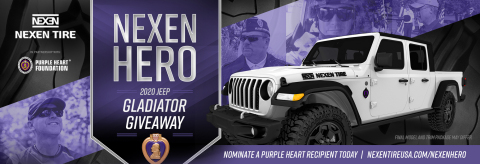 DIAMOND BAR, Calif. May 17, 2019; In the wake of last year's highly-successful “American Muscle for American Heroes” program, Nexen Tire America, Inc. has partnered with The Purple Heart Foundation for a second time to honor a combat-wounded veteran and Purple Heart recipient by giving away a custom 2020 Jeep Gladiator Sport S. The “Nexen Hero” Campaign is designed to honor a well-deserving veteran who was wounded in combat and awarded the Purple Heart Medal by giving away a new Jeep Gladiator equipped with 35-inch Nexen Roadian MTX Extreme Off-Road Mud Terrain tires and several Mopar aftermarket parts. The campaign begins on May 15 and the winning recipient, who will be selected by the Purple Heart Foundation, will be announced on National Purple Heart Day, Aug. 7.
