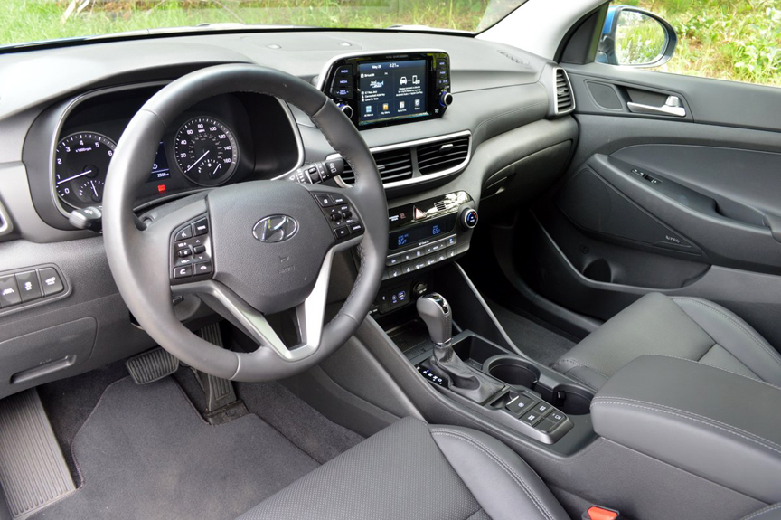Accentuating the performance drain for 2019 is the loss of the old model's 7 speed twin clutch automatic transmission in favor of a new 6-speed automatic. Although the 6 speed does offer Shiftronic gear changing via the console stick (no paddles), the loss of the extra gear (compared to the old Tucson) adds to the acceleration shortfall. In 2 wheel drive form, the Tucson we drove weighs in at a hefty 3,475 pounds, which means each horsepower is responsible for motivating 19.1 pounds of SUV. This is a power to weight ratio that does not favor rapid response. But for such a comparatively heavy crossover, the Tucson does post a respectable 25 MPG in overall driving.