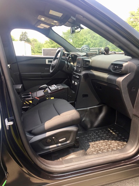 Ford’s PI has some differences to the civilian Explorer. A steering column-mounted gear selector is used rather than the rotary gear shift dial to free up space for equipment in the center console. There’s only two seat rows, not three. Additional steel structure in the rear is installed to provide safety for the officers in a 75-mph rear-collision. This exceeds the federal requirement of a 50-mph rear-collision test.