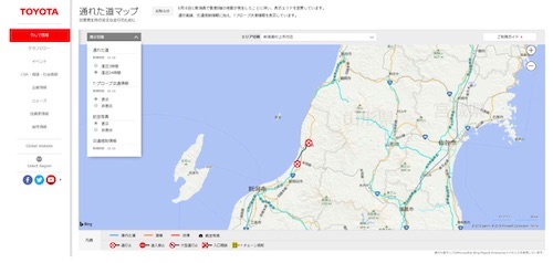 Toyota Provides Easy-to-use Map Showing Real-time Traffic Information and Road Closures in Japan