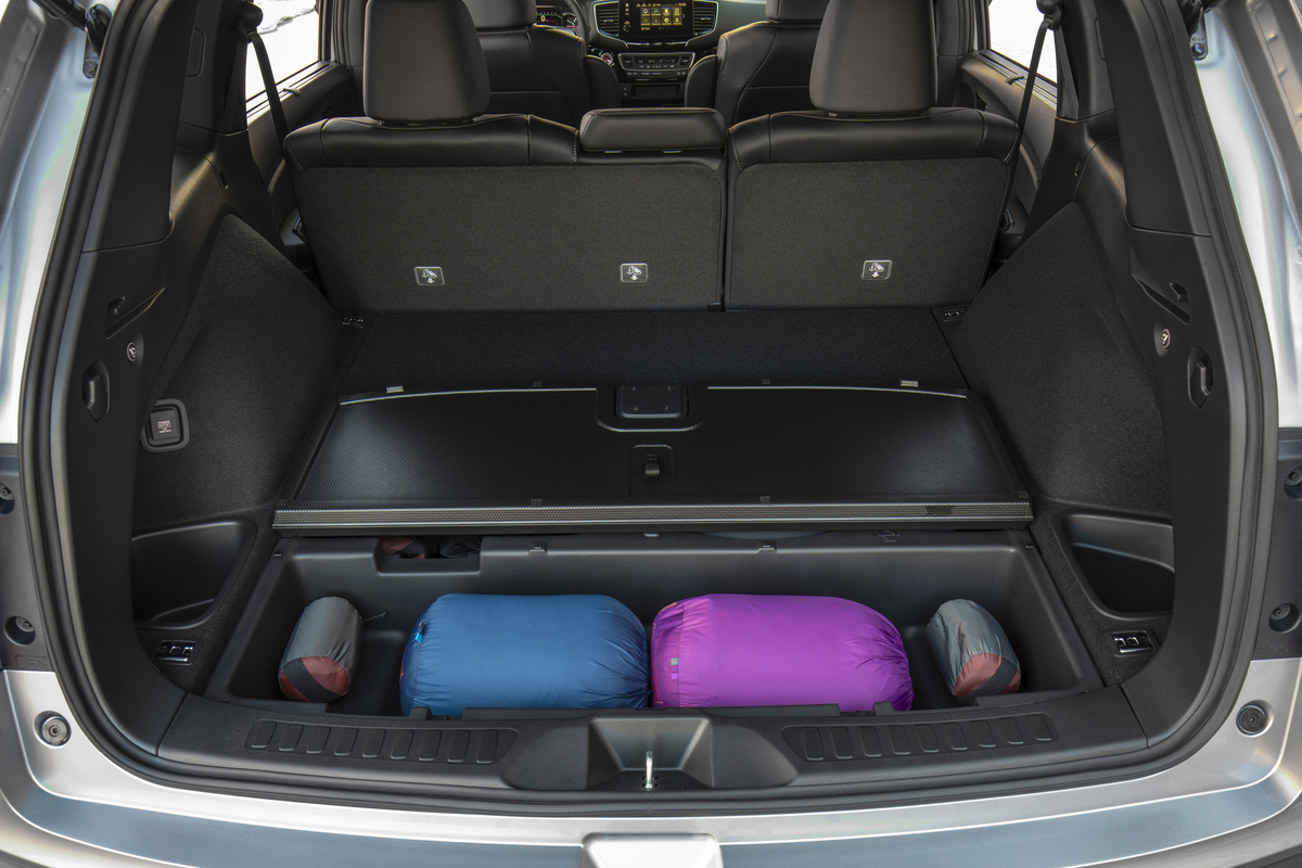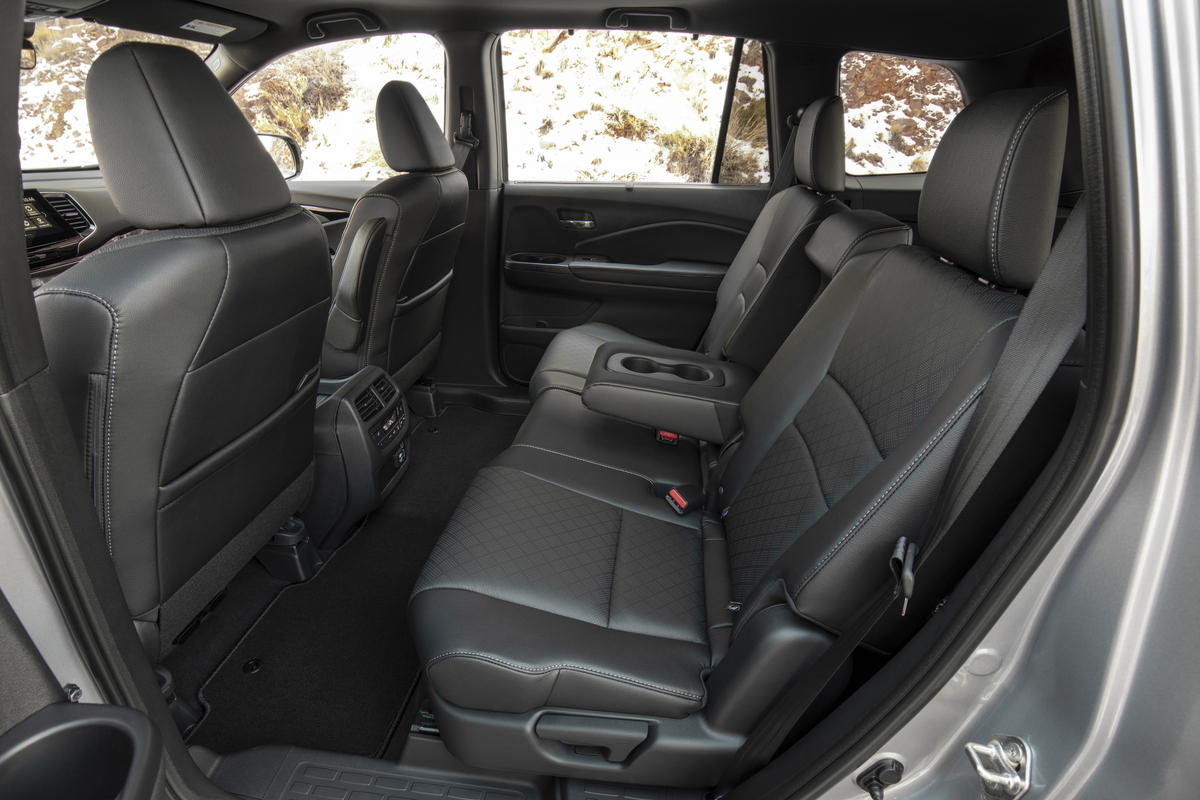 Rugged because it suspension has been tweaked to handle rougher terrain and elements. It also sits higher off the ground. It comes equipped with a 3.5-liter V6 (280 horsepower, 262 pound-feet of torque) and a 9-speed automatic transmission. Like the Pilot, it has an Intelligent Variable Torque Management (iVTM-4) all-wheel-drive system; Intelligent Traction Management drive modes of Normal, Snow, Sand, and Mud; a Sensing driver assistance suite; acoustic glass windshield side windows.