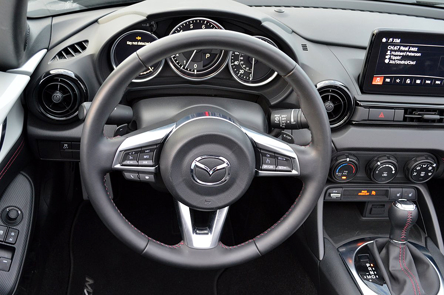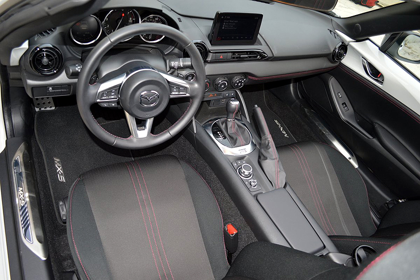since birth. Unlike most new vehicles today, the MX-5's dashboard features few buttons or menus to confuse the driver. Yes, there's a 7 inch color touchscreen display to help manipulate controls for a