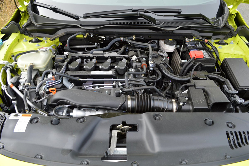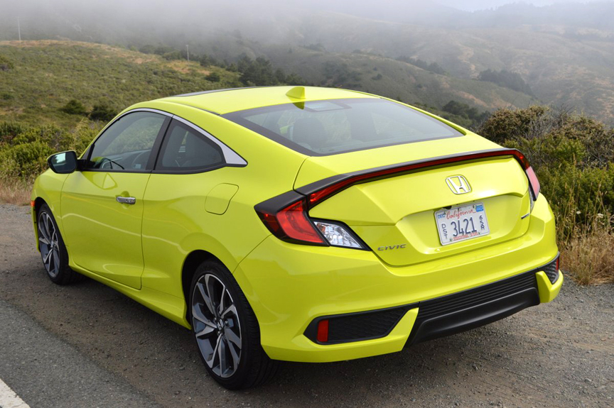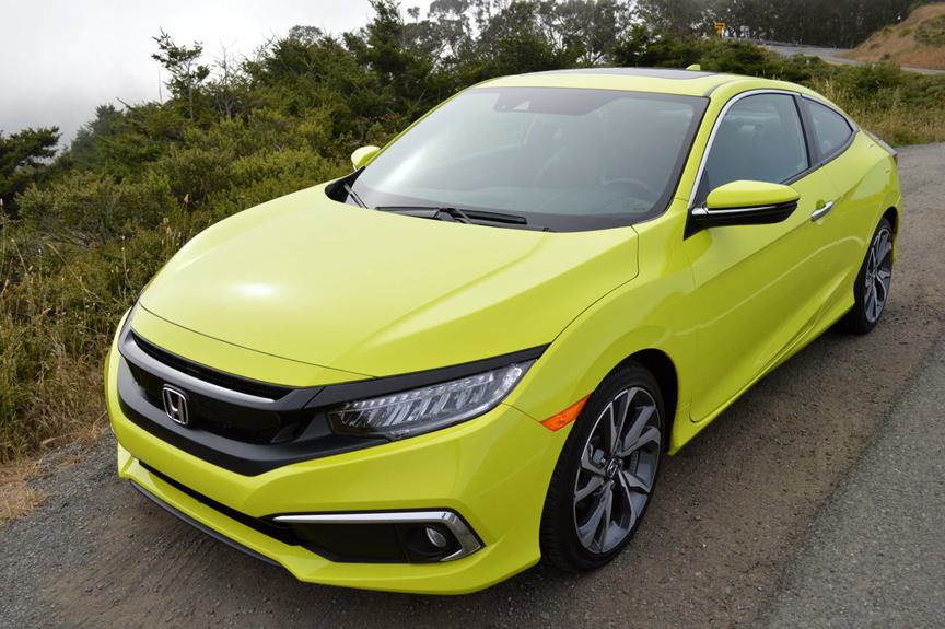 Much hotter than this car's performance was its exterior color. Finished in "Toxic Yellow Pearl," the Civic coupe looked like it was good for a 0-60mph run of 3 seconds and a top