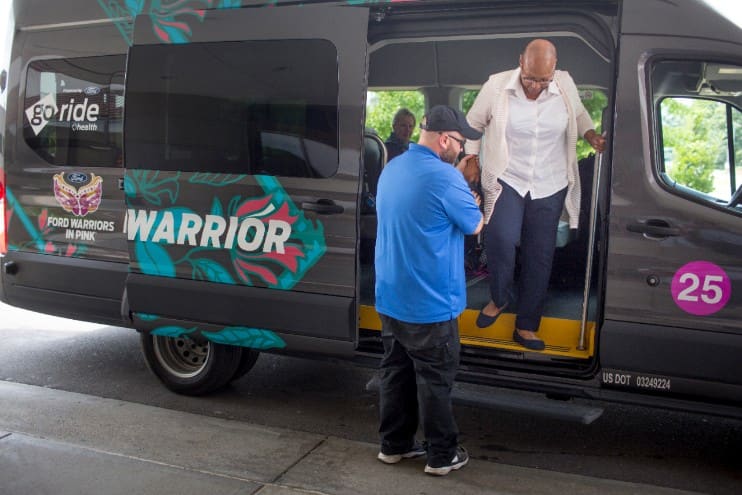 Finding herself without reliable transportation, Stephanie M. was connected with GoRide Health, a non-emergency medical transportation service that took her to and from appointments with the help of a professionally trained driver and specially upfitted Ford Transit vans. To help ease burdens like this, GoRide Health and Ford Warriors in Pink are teaming up to offer complimentary rides to breast cancer patients through the end of the year.