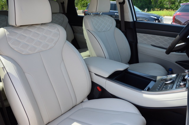 So, yes, you can move a lot with the Palisade. And the moving gets done by a 291-horsepower 3.8-L V6 coupled to an eight-speed automatic. On the day’s drive I mentioned it was just me and an associate on board. The V6 delivered plenty or performance with the Palisade moving quickly from stop. The automatic is crisp-shifting and I really liked the push-button shift-by-wire gear selector. The HTRAC AWD system has different selectable drive modes that optimize performance based on driving conditions.