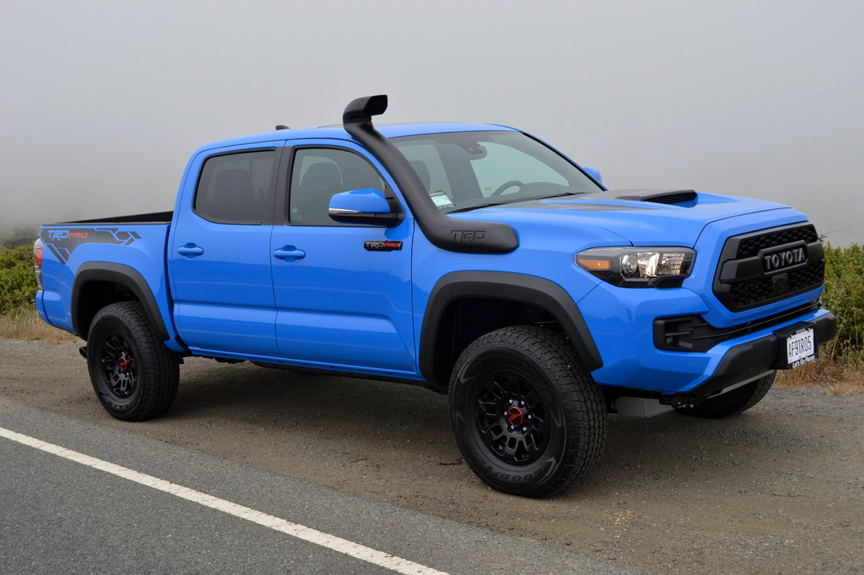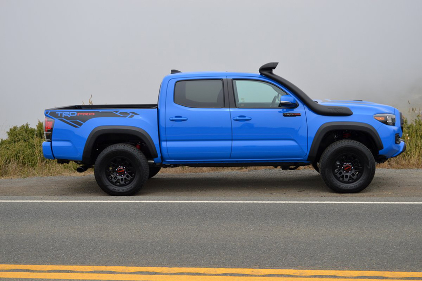 The Tacoma TRD Pro cuts a statuesque pose. It stands tall enough to require you to slide the last 4 inches when you disembark from your lofty perch in the cab. But unlike so many tricked out trucks you see