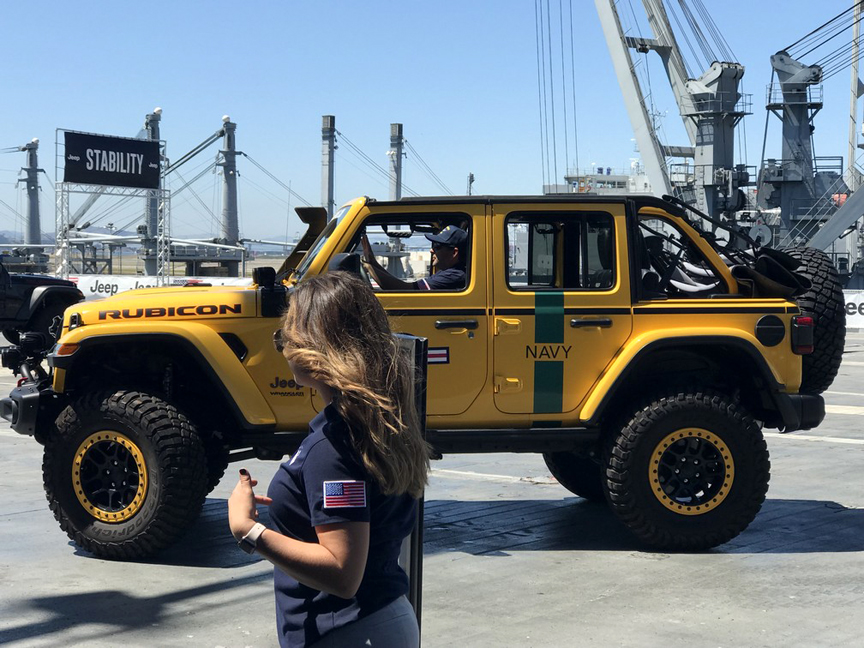 In an exchange of emails between your author and Scott Brown of Jeep: “Can we do a bit of high speed testing on the flight deck, after all, lots of run-off, if a bit damp and salty” Response: “No, rides only.” Does this the Jeep have a snorkel option?” Response: “Oh boy, it does….”