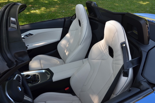 On the convenience side, the electrically operated soft top can be opened or closed in the space of ten seconds, at speeds up to 31 mph. And the trunk is 50% larger than the previous Z4 at 9.9 cu.ft. and easily holds two roll-aboard suitcase, which I indeed did on a trip to the airport.
