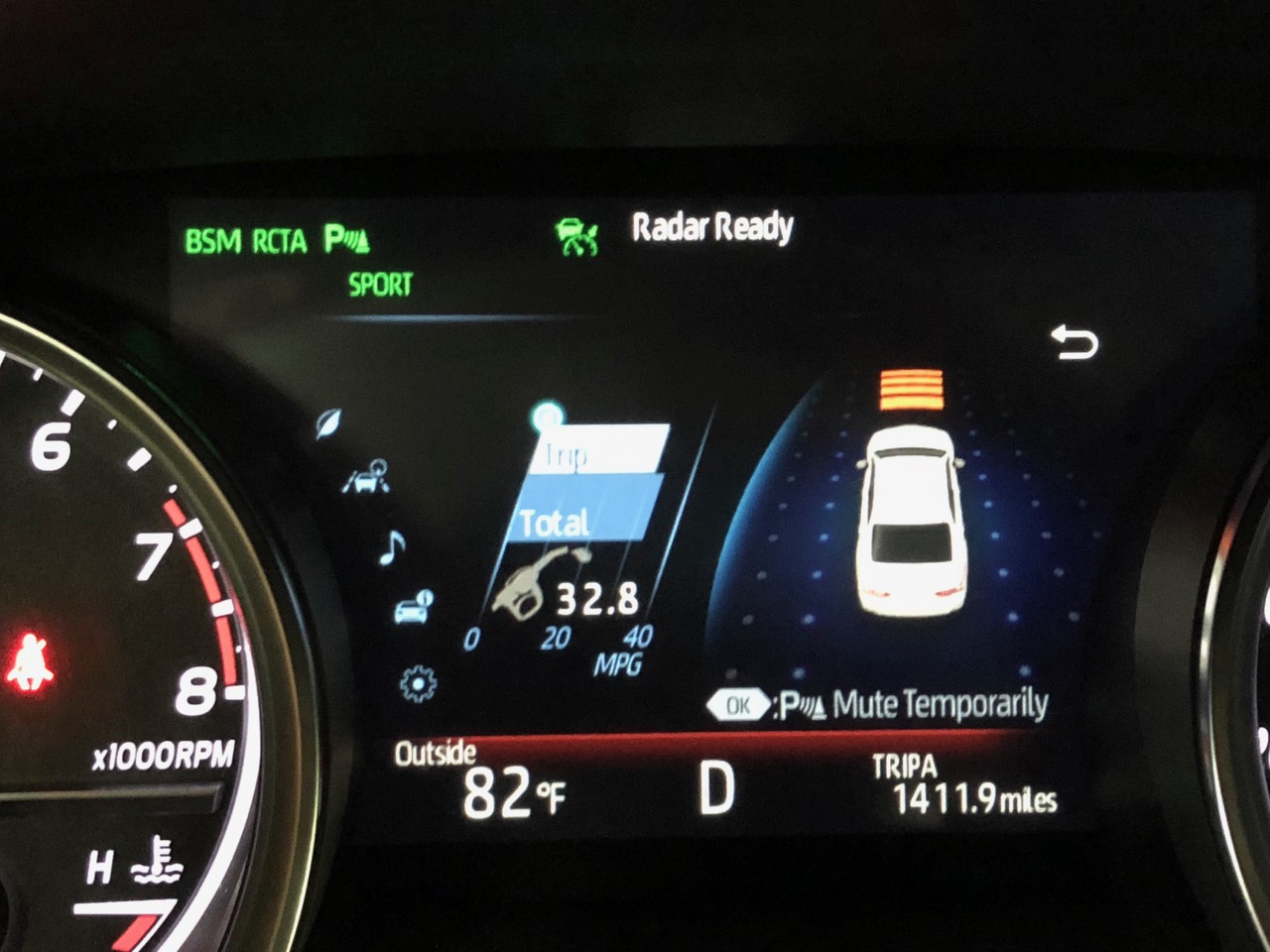 HUD, Heads Up Display was a useful feature, once I got the height and brightness set correctly. You can display Toyota’s pre-collision indicators, digital speedometer, shift position, a compass, outside temperature and more (V6 models only).